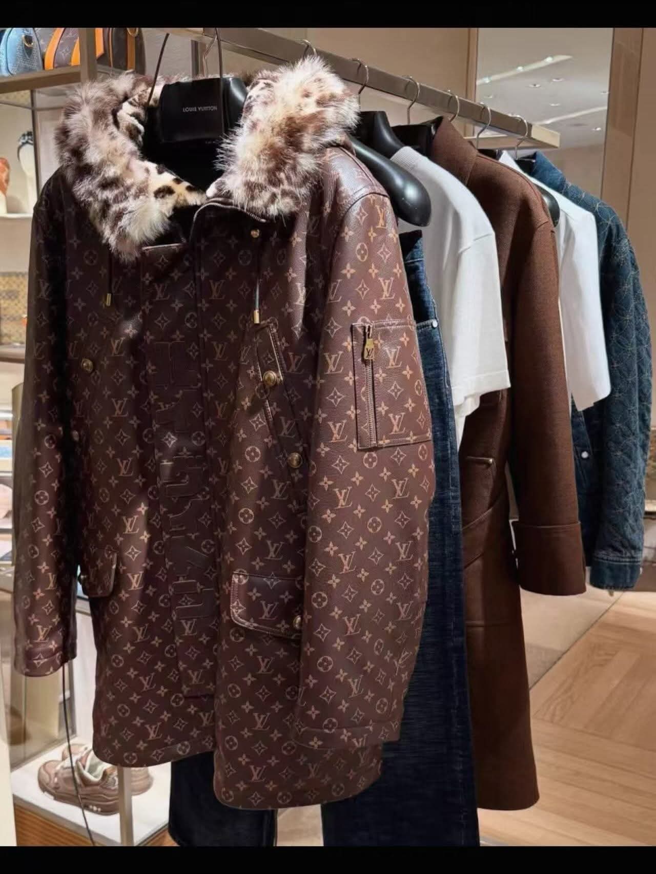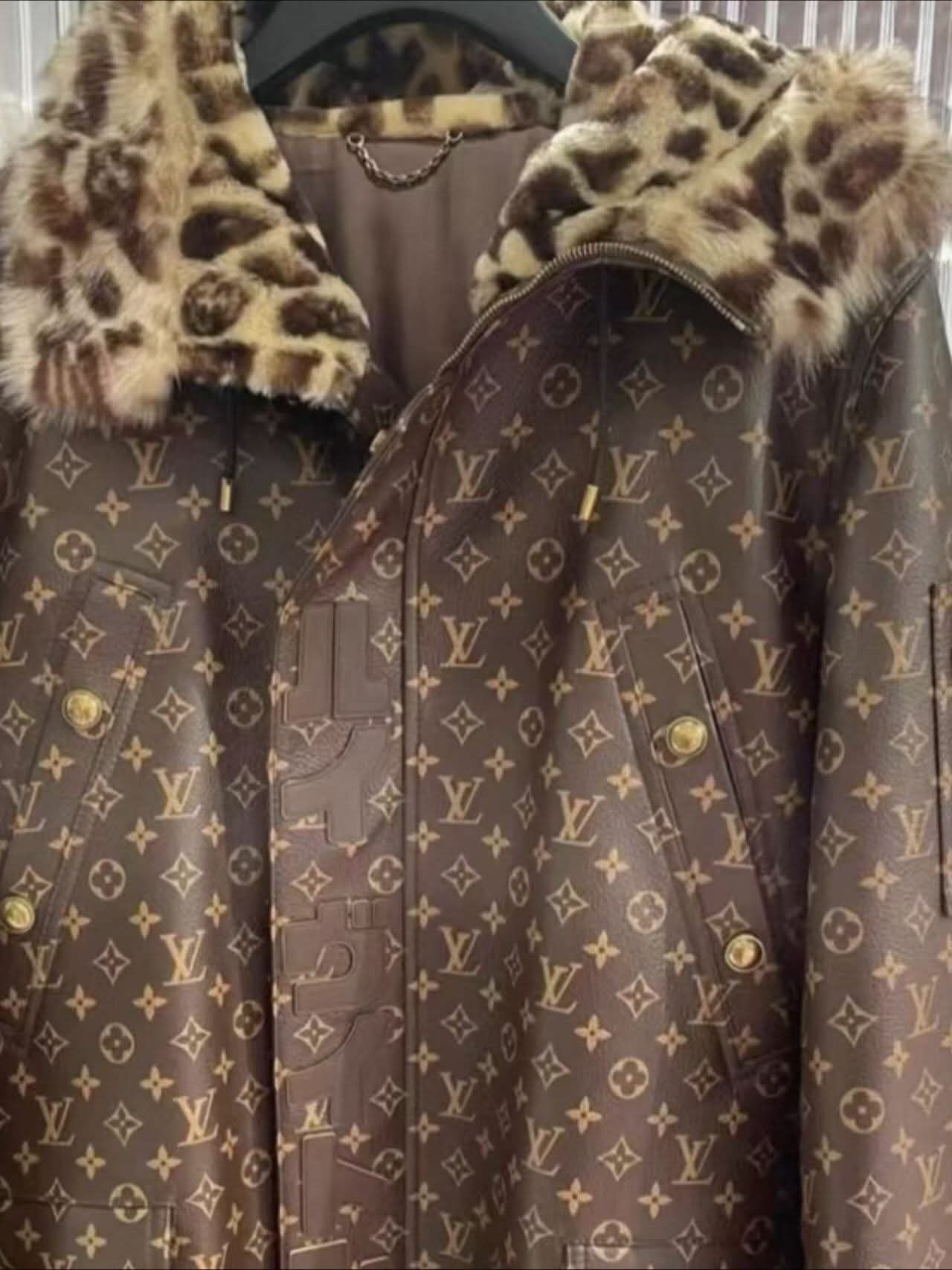 The fur-lined collar not only adds seasonal functionality but creates a bold visual contrast against the monogram leather surface. Whether styled with denim, tailored trousers, or layered over knitwear, this Customized Leather Jacket commands attention in any setting.
